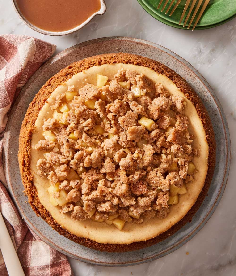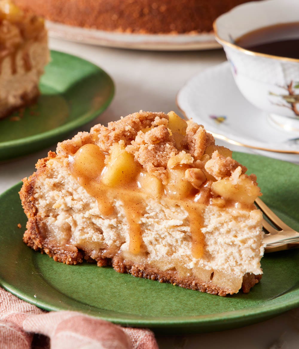 When I was brainstorming new recipe ideas for Thanksgiving, I sought inspiration from two of my favorite desserts— cheesecake and apple pie— so I thought it would be fun to do a combo. This apple pie cheesecake has a crunchy Biscoff cookie base with walnuts for some extra texture and a lovely, creamy cheesecake filling kissed with cinnamon and vanilla. Enveloped in the velvety cheesecake and spooned on top is a juicy apple pie filling that is so easy to make from scratch, but is beyond delicious.