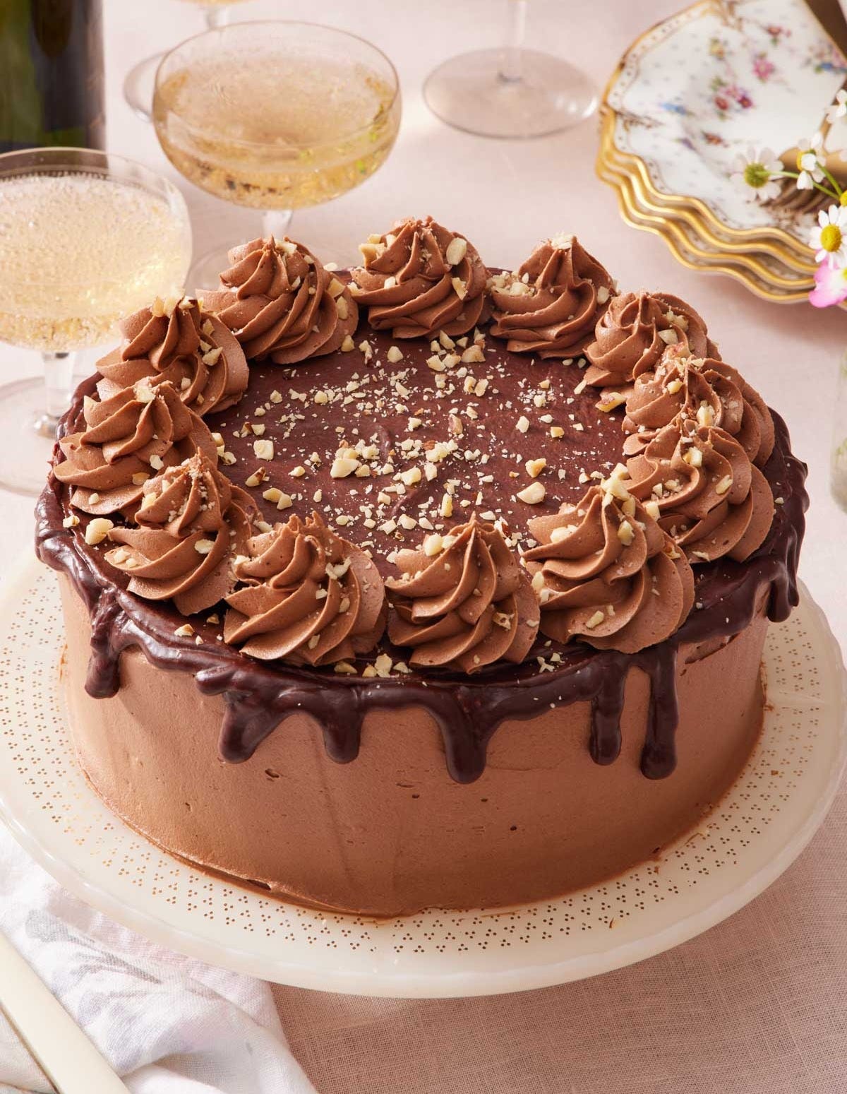 A fudgy chocolate layer cake coated with dreamy whipped Nutella frosting.